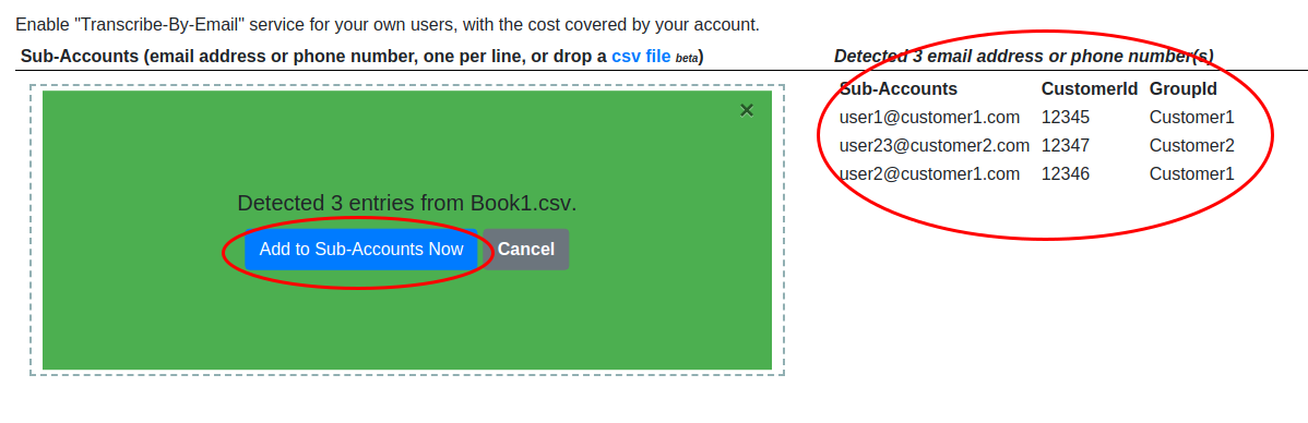 Excel/CSV Upload as Sub-Accounts