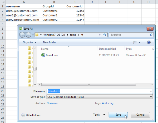 1. Export your Excel user list as .CSV file.
